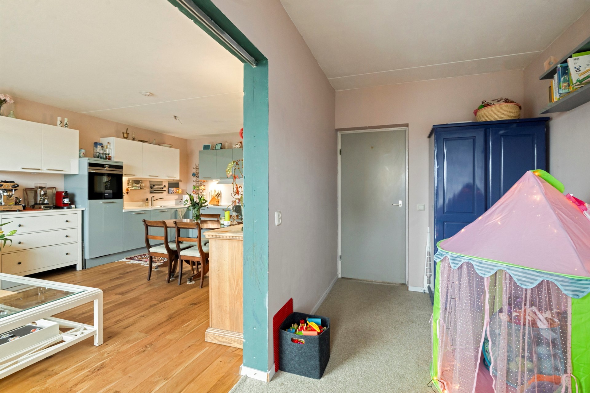 De woning is in 2023 voorzien van een mooie nieuwe badkamer, toilet en eiken lamellenparket in de gang en woonkamer. De keuken is verplaatst naar de woonkamer, zodat u als een van de weinigen beschikt over maar liefst 4 slaapkamers. De keuken zelf is modern en voorzien van de meeste inbouwapparaten.